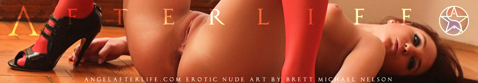 Angel Afterlife tattoo model Krysta Kaos posing nude in fishnet stockings in First by Brett Michael Nelson