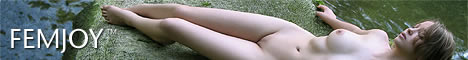 Busty brunette FEMJOY model Adelia with natural bush outdoors nude in Smile