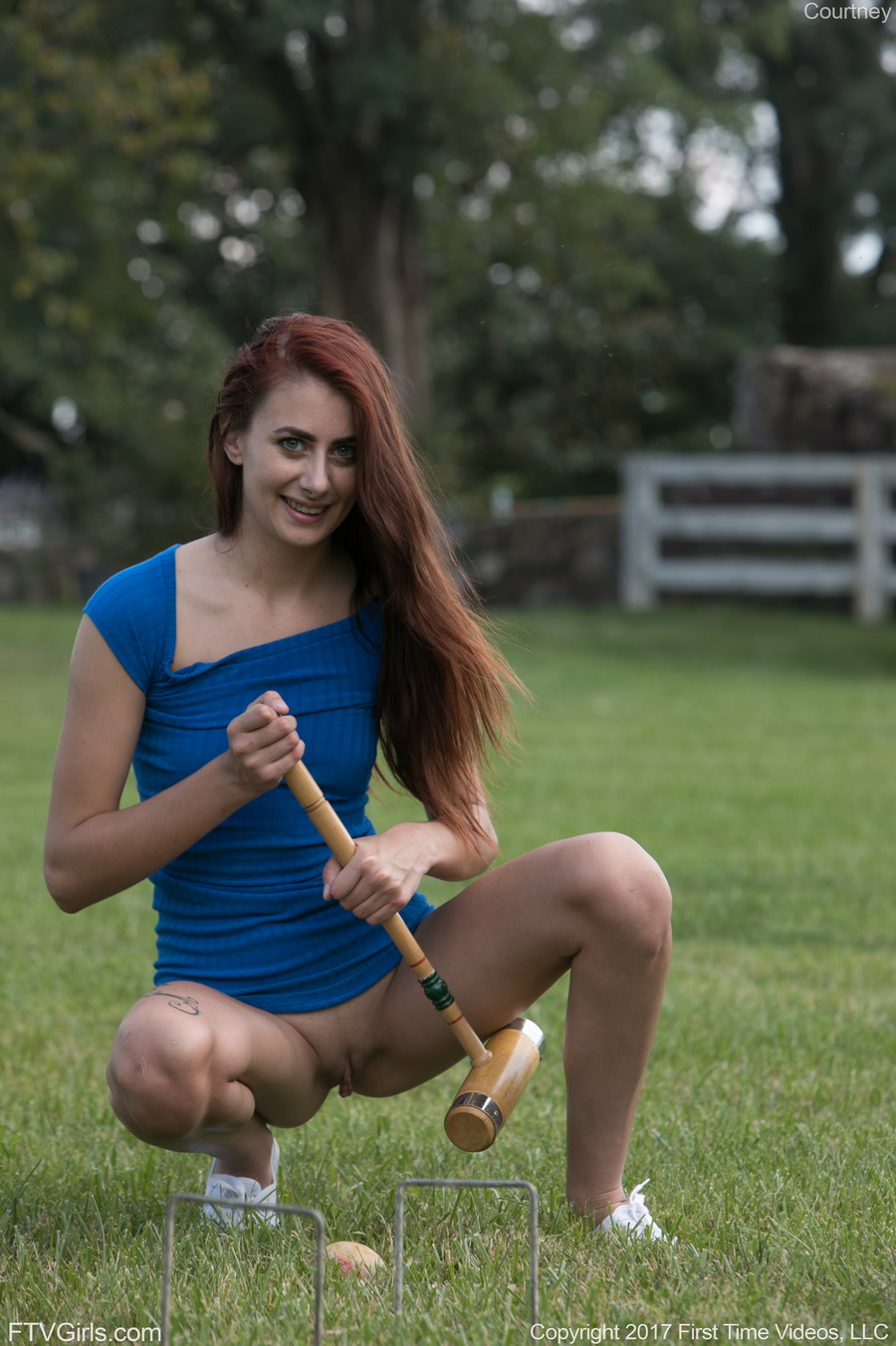 New FTV Girls model Courtney Martin strips nude in garden to use swing and play croquet naked in Swimsuit Is Optional