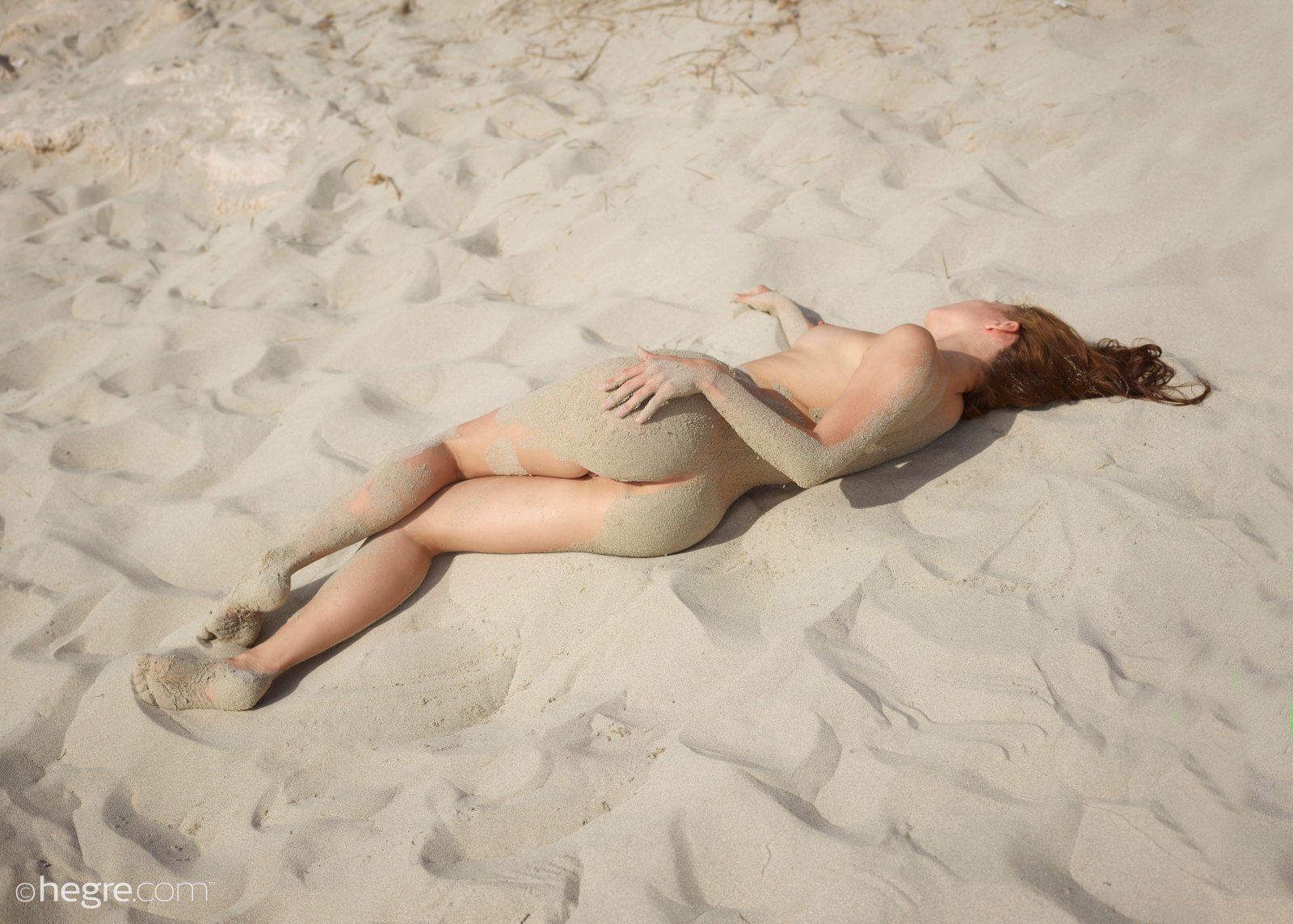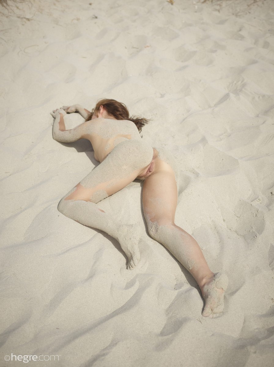 Naked Hegre Art model Jenna Kseniya rolling in sand in Beach Nudes