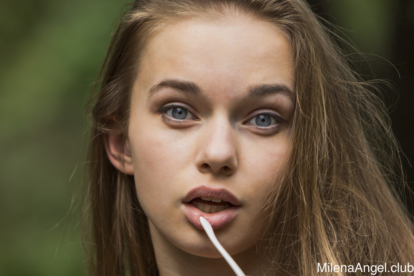 Milena Angel in pink one piece swimsuit & high heels strips nude in public park