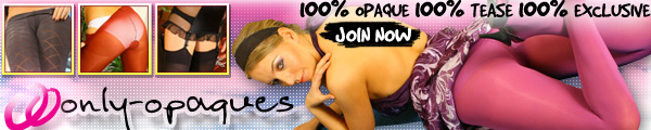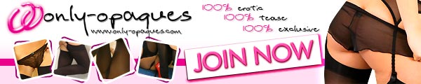 English Only Opaques model Natalia Phillips in silky, strappy top, black denim miniskirt and red stockings posing nude