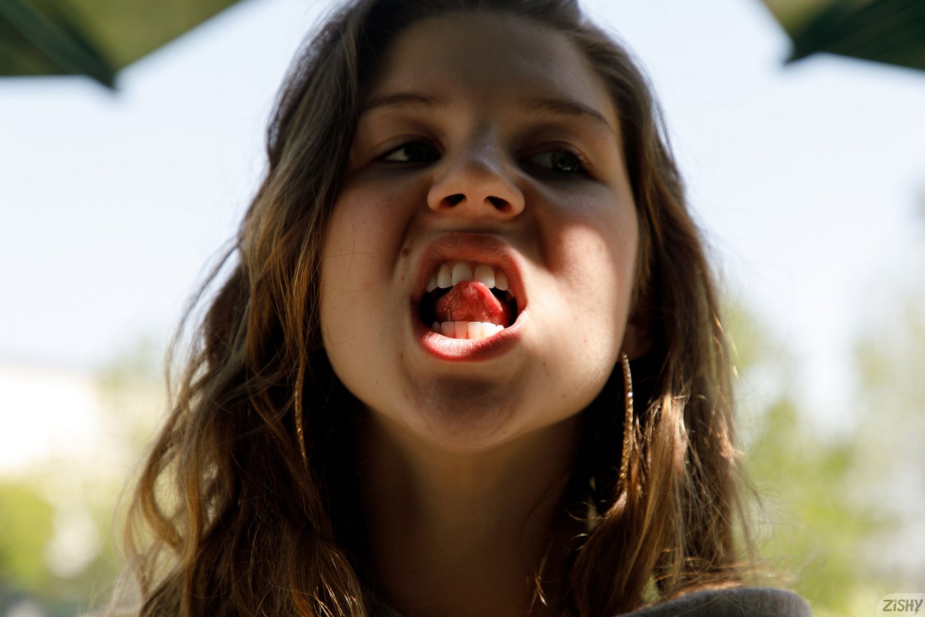 Zishy model Florida Mishlove flashes her nude tits in public and car in Frumpen in Mah Klinez