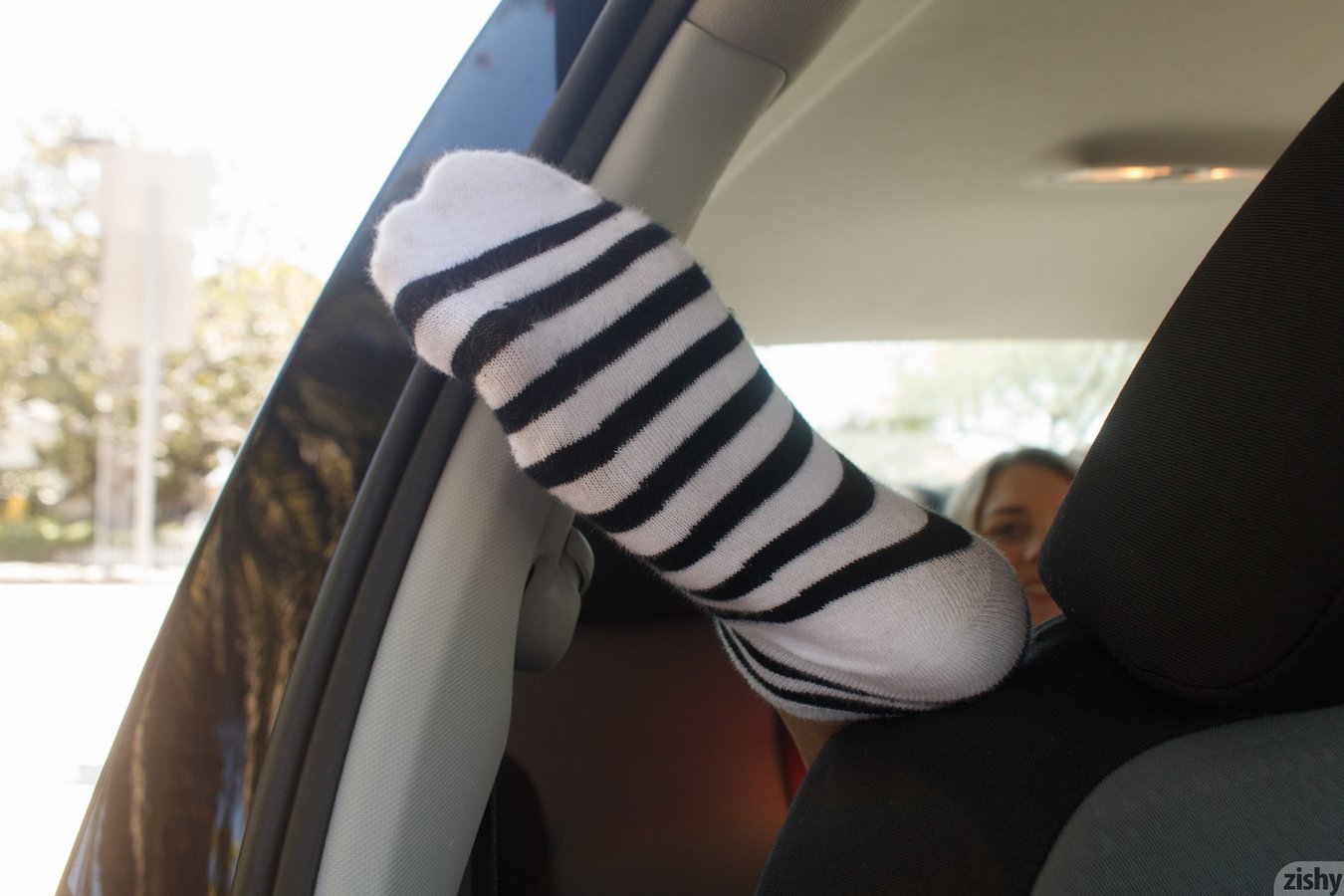 Busty blonde teen Zishy model Gabbie Carter goes nude in car in Santa Monica in Backseat Lover