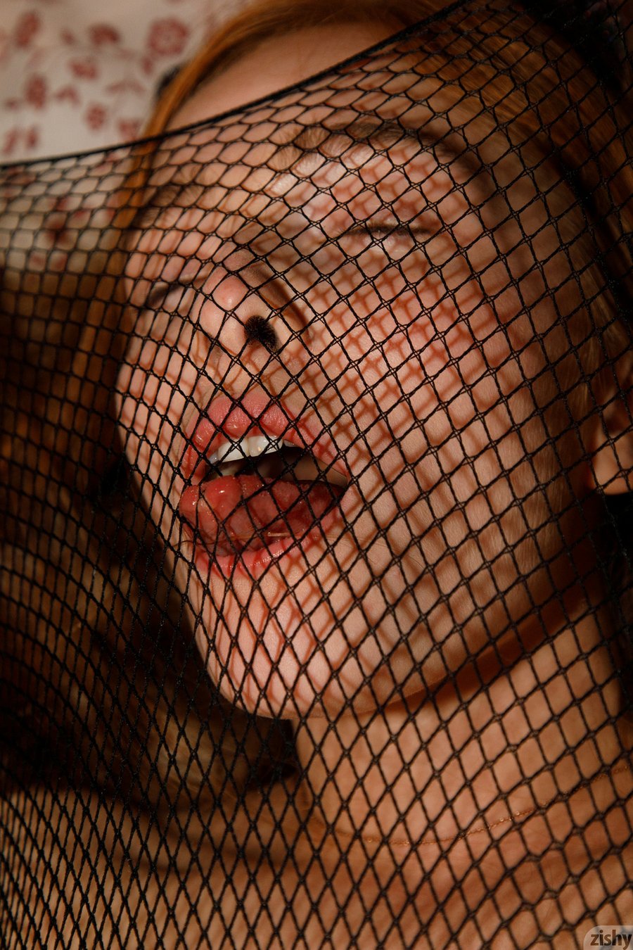 Redhead Zishy model Jia Lissa in mesh bodystocking goes nude in Mesh Tards