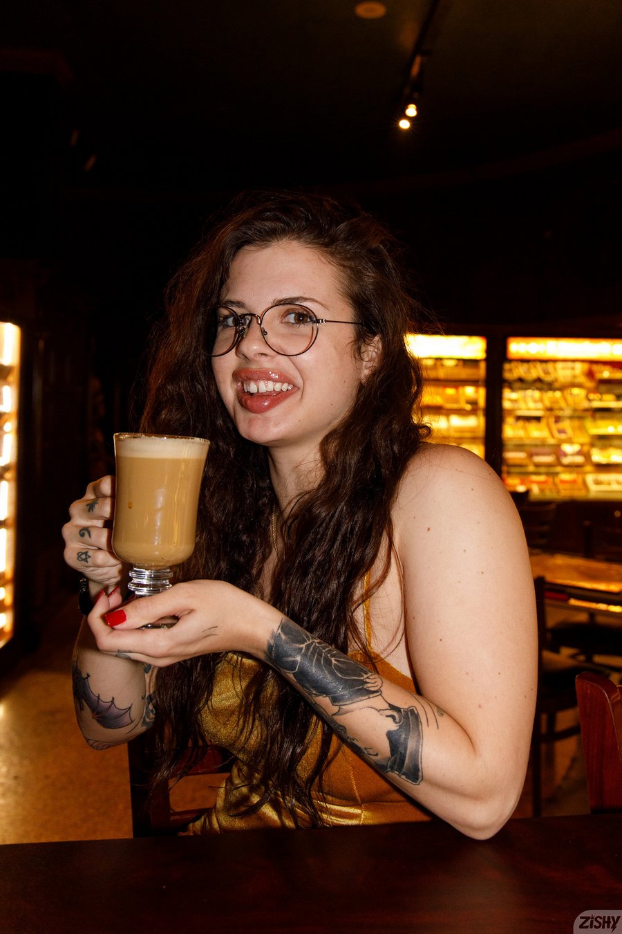 Zishy model Keisha Grey in golden dress flashes nude body in public in The Cuban Eggroll