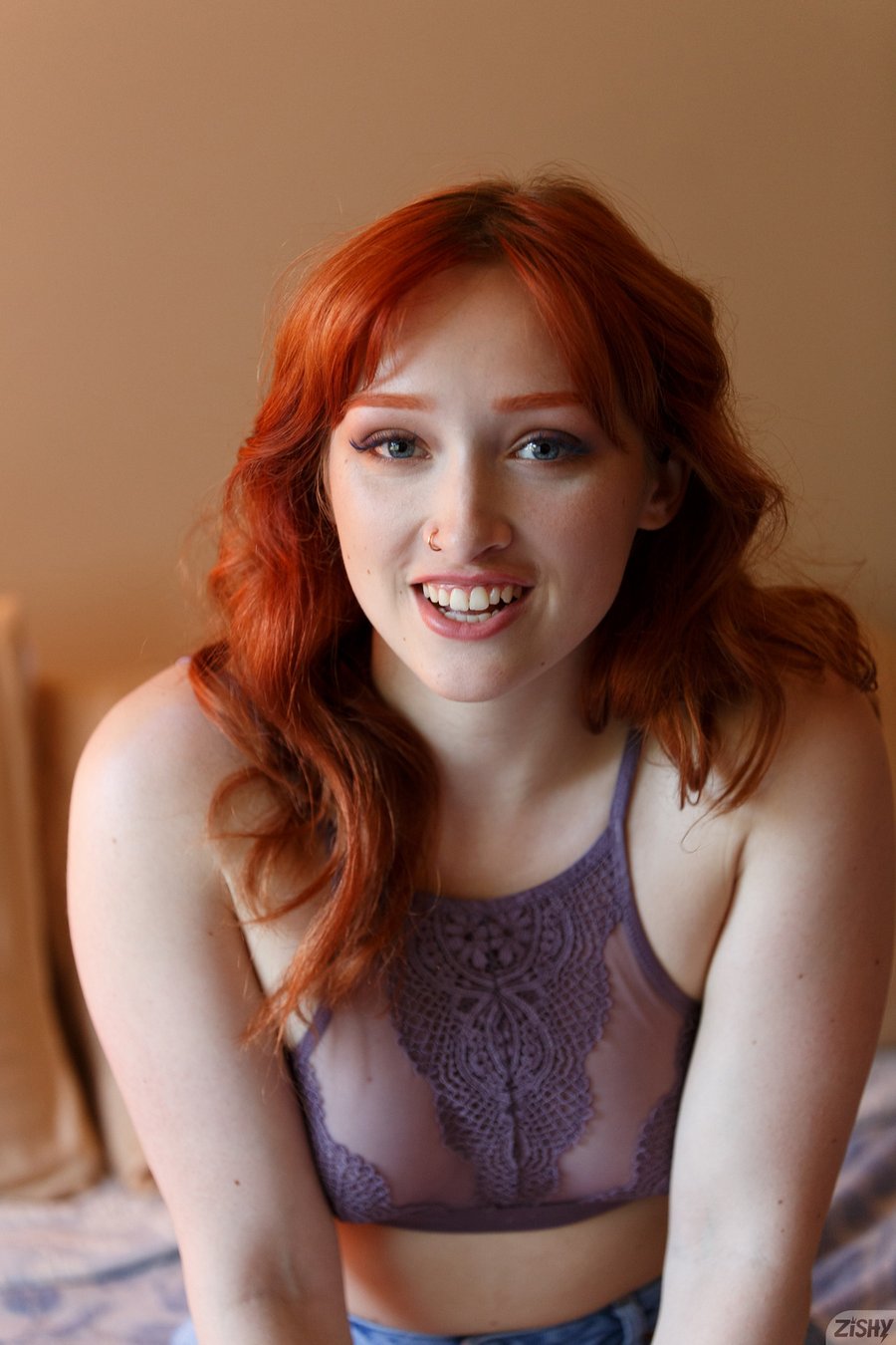 Redhead Zishy model Lady Noire in denim shorts gets nude in Loves Norma
