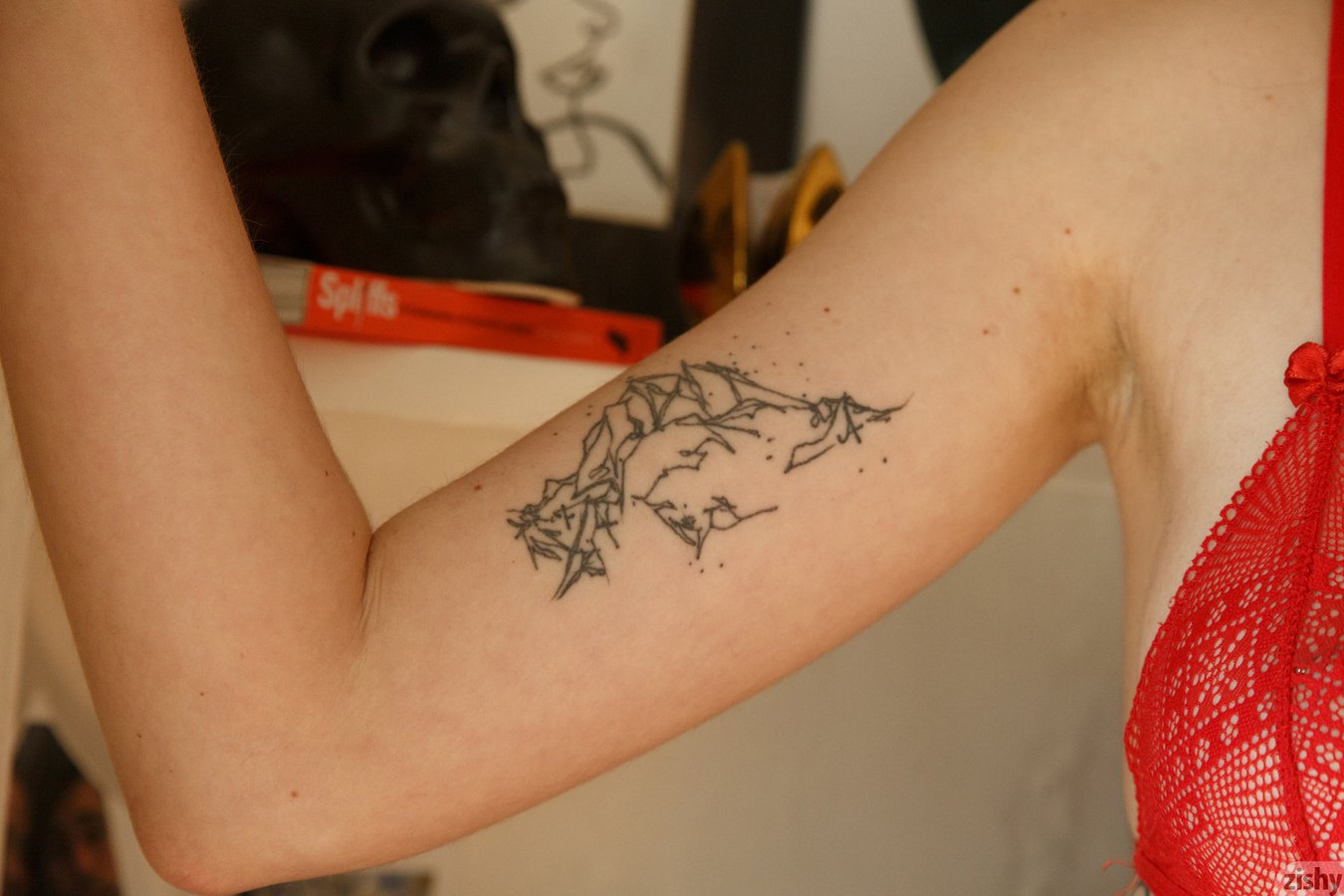 Skinny French Zishy model Marie Boitte in red lingerie strips nude in Stop And Think