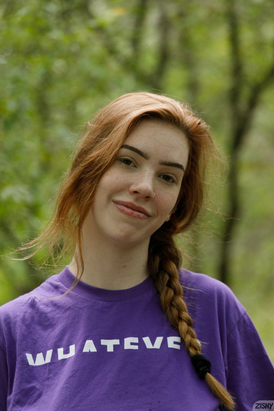 Busty Zishy model Nala Brooks flashes her big nude tits in public at Zilker Park in Austin, Texas in Purple Whatevers